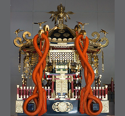 正保3年(1646年)頼房公より水戸東照宮に奉納された大神輿。平成27年に50年ぶりの大修復を行い、水戸黄門祭りでもかつがれています。