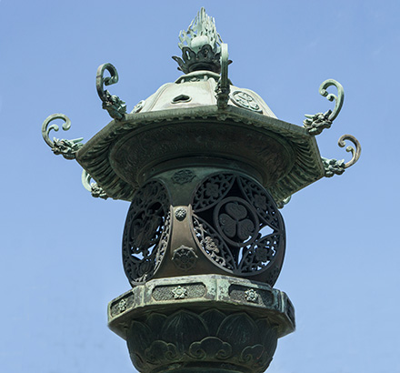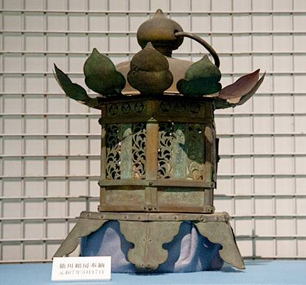 家康公の33回忌にあたる慶安4年(1651年)に頼房公により奉納された青銅灯篭。全高2m90cmあり、二基が対となって境内に配されています。