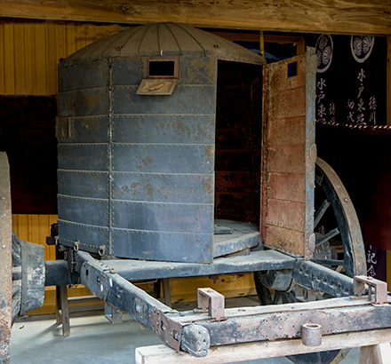 幕末に軍備増強策として武器の製造も行っていた水戸藩第九代藩主の徳川斉昭公が考案した戦車。日本最古の鉄製戦車と言われています。